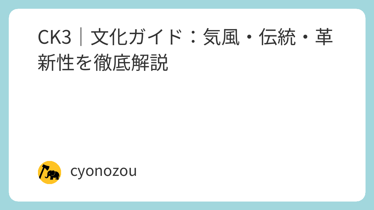 Crusader Kings III(CK3)における 文化は、プレイヤーの王朝経営やロールプレイを大きく左右する重要なシステムです。
